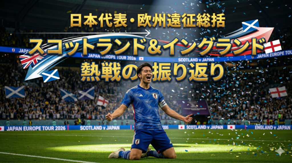 最終更新:2026年4月3日 やりましたぁああ!!! グラスゴーでスコットランドを下し、ウェンブリーでイングランドを下し、2試合とも1-0。2連勝!! 日本代表は今回の欧州遠征で、W杯優勝候補のイングランドに対して歴史的な初勝利を飾り、昨年のブラジル代... -